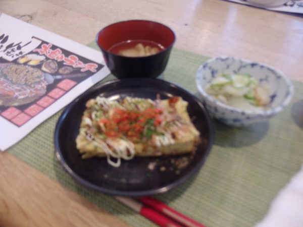 「ソースの焦げる匂いが堪らないね」という入居者様のお話から栄養士さんにお願いして、お好み焼きランチの献立を作っていただきました。予め厨房で準備したお好み焼きを、それぞれのユニットの温めたホットプレートの上で「最後の仕上げのソースをジュ~!!」を実演です。あっという間にいい匂いがユニット全体に広がりました。